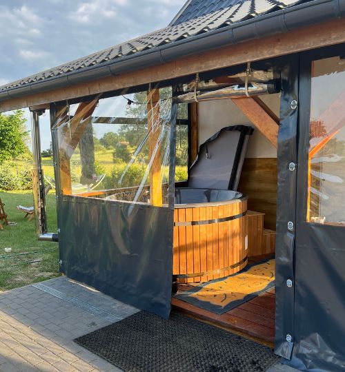 Goście domku Victoria mogą cieszyć się wyjątkowym odprężeniem w prywatnej saunie oraz gorącej balii z jacuzzi. Sauna to doskonały sposób na regenerację organizmu, poprawę krążenia i głęboki relaks po aktywnym dniu. Natomiast kąpiel w podgrzewanej balii z hydromasażem pozwala rozluźnić mięśnie i poczuć prawdziwe odprężenie, niezależnie od pory roku. To idealne miejsce na wieczorny odpoczynek pod gołym niebem, w otoczeniu natury i ciszy. Wybierz komfort i odprężenie – zanurz się w relaksie, który koi ciało i umysł.